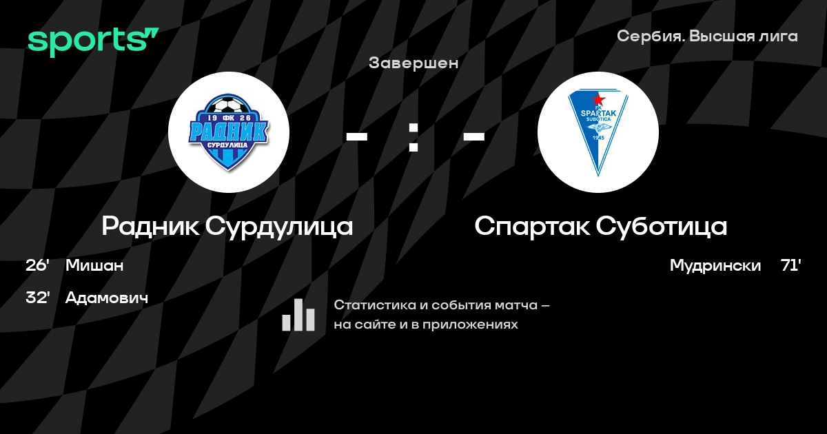 Миркович - Андич, Йочич, Радованович, Чаласан, Фаркаш - Торбица, Аджуру - Милич, Мудрински, Иванович