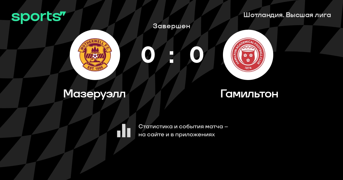 Мазеруэлл – Гамильтон: Мазеруэлл не проигрывает в 6 последних матчах против этого соперника в турнире «Шотландия. Высшая лига»