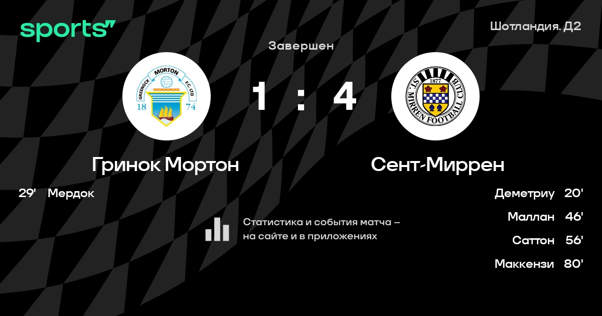 О’Брайен - Деметриу, Маккензи, Бэрд, Ирвайн - Смит, Макгинн, Маллан, Мадженнис - Саттон, ЛойЗапасные: Лэнгфилд, Гордон, Уайт, Куинн, Стори, Тодд