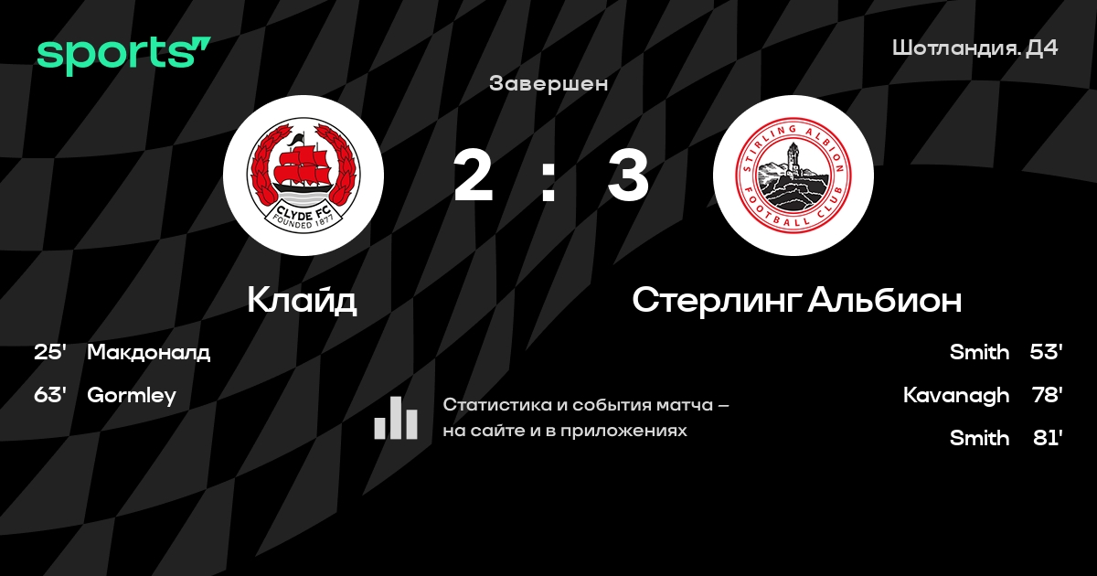 Smith - Райт, Блэк, McGeachie, Куигли - Кэддис, Dickson, Макларен - Lee Smith, Kavanagh, HendersonЗапасные: Binnie, Mills, McMullan, Forsyth, Петри, Литтл, Моррисон