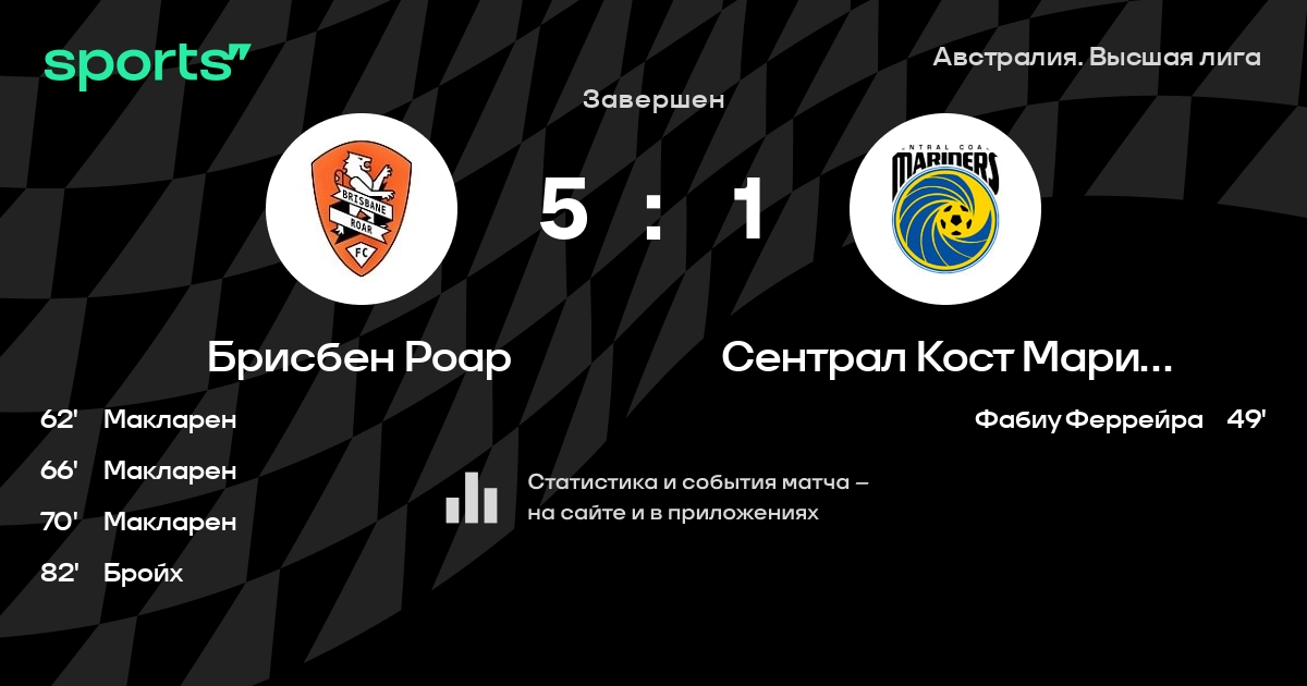 Трансляция Брисбен Роар - Сентрал Кост Маринерс