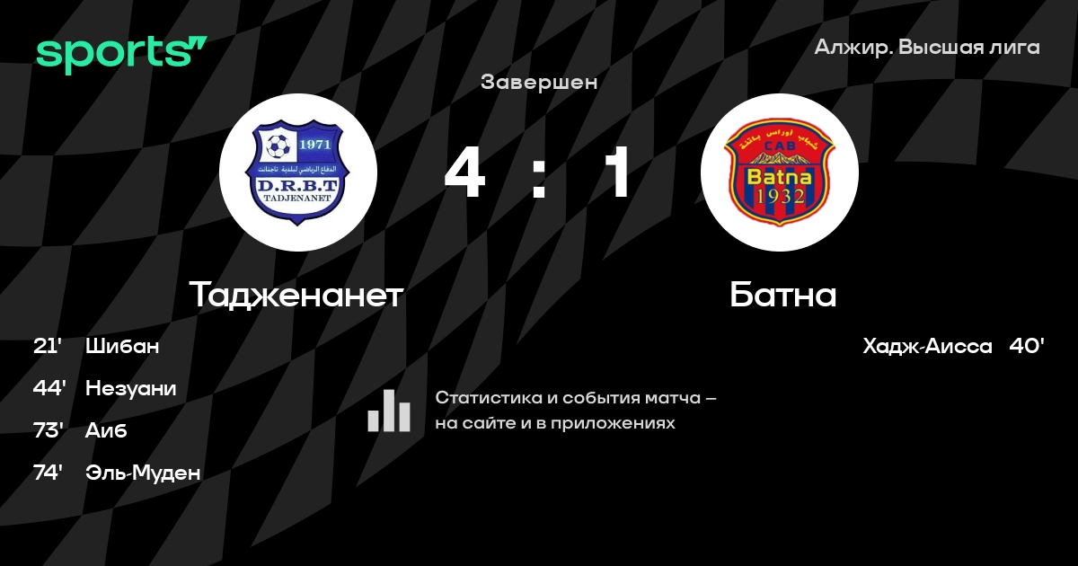 Литим - Аиб, Мазари, Бутебба, Бенальджия - Гумиди, Си Аммар, Маруси, Незуани - Шибан, Деман