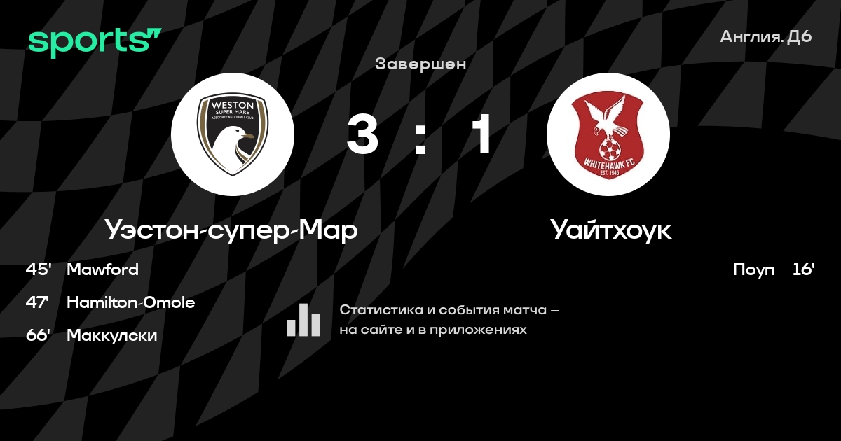 Уэстон-супер-Мар - Уайтхоук: положение в турнире