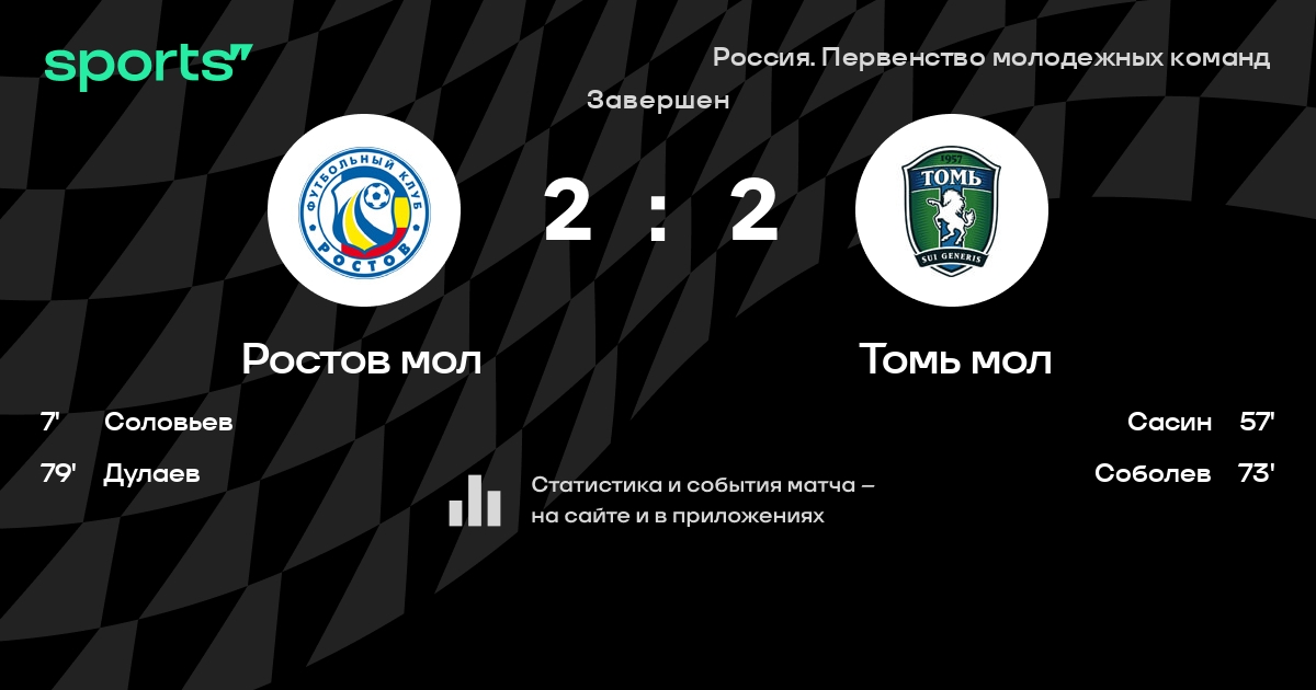 Первенство молодежных команд. «Рубин» сыграл вничью с «Амкаром» и другие результаты