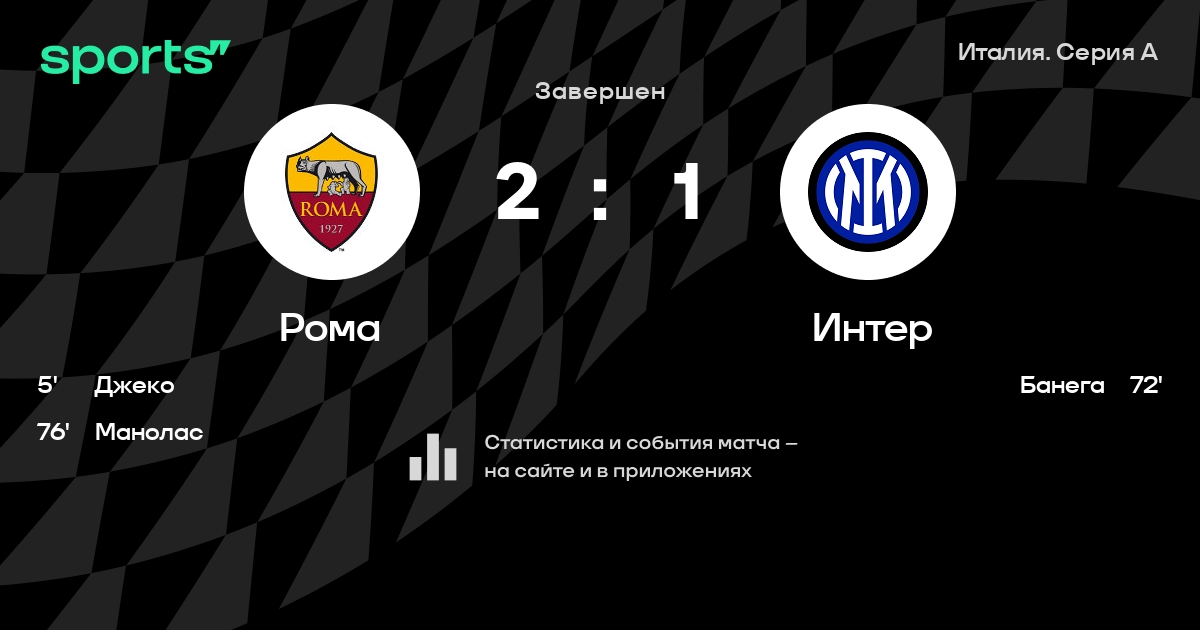 Чемпионат Италии. «Рома» обыграла «Интер», «Милан» и «Сассуоло» забили 7 голов