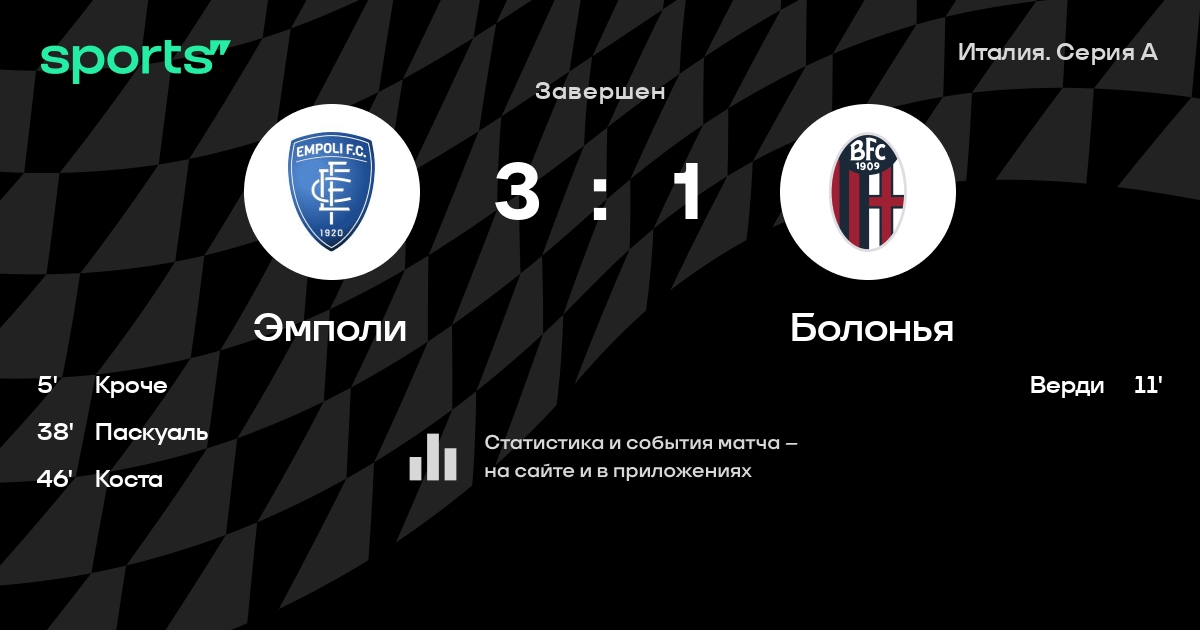 Скорупски - Паскуаль, Коста, Беллуши, Лорини - Кроче, Диуссе, Маури, Эль-Каддури - Пуччарелли, ТьямЗапасные: Пелаготти, Пульези, Барба, Дзамбелли, Весели, Димарко, Зайц, Дамьяни, Бульо, Тельо, Якупович