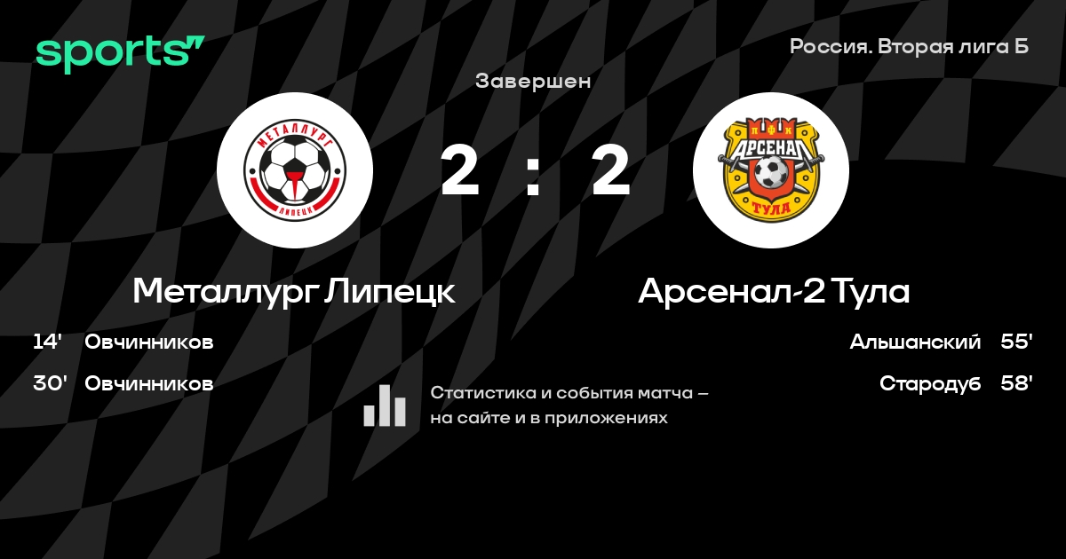 Металлург Липецк - Арсенал-2 Тула: статистика матча