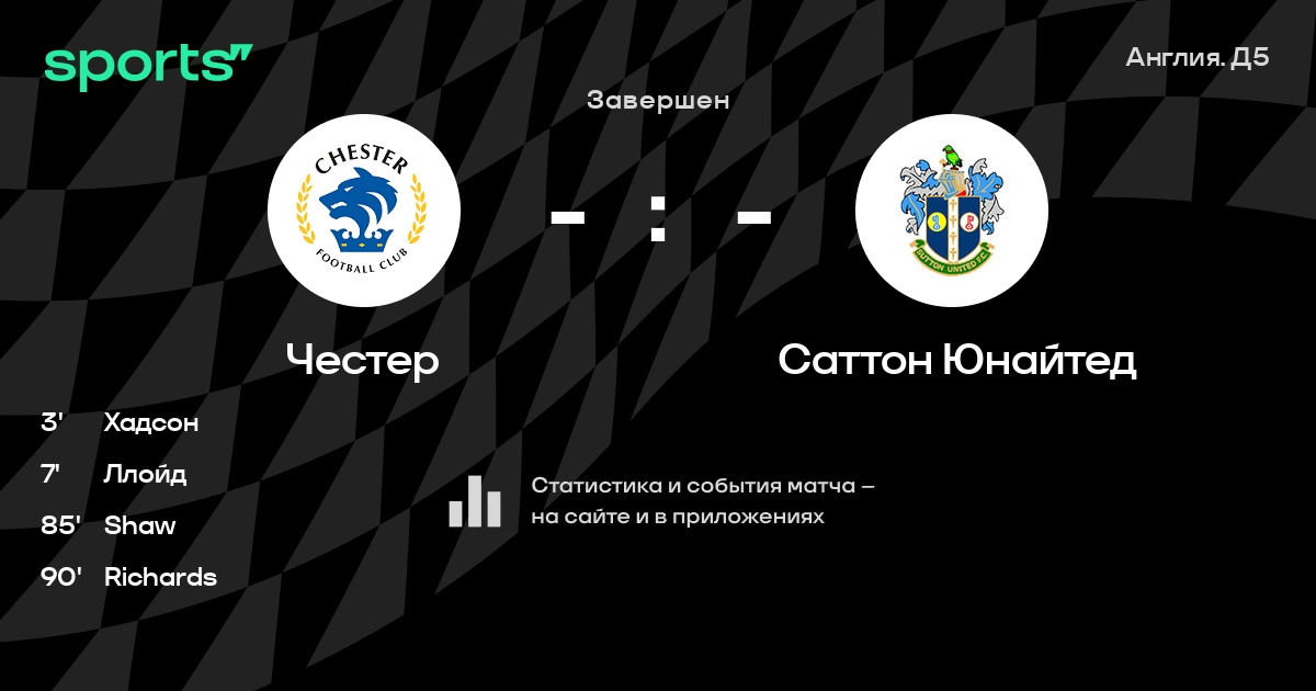 Трансляция Честер - Саттон Юнайтед