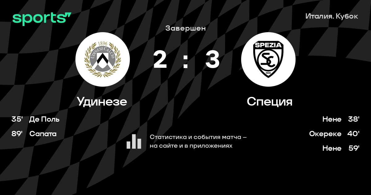 Карнезис - Эрто, Армеро, Фелипе, Видмер, Ларангейра - Агеманг-Баду, Фофана, Де Поль - Ридер Матос, СапатаЗапасные: Скуффет, Самир, Анджелла, Эденилсон, Хадльвредссон, Балич, Янкто, Лоди, Коне, Эвандро, Перица, Пеньяранда