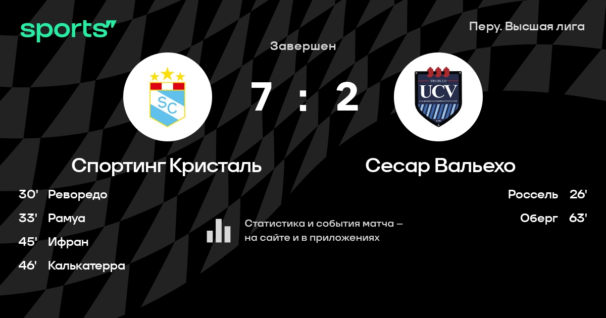 Трансляция Спортинг Кристаль - Сесар Вальехо