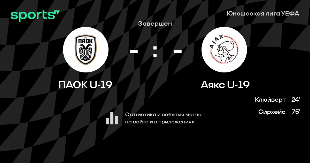 ПАОК U-19 – Аякс U-19: коэффициенты