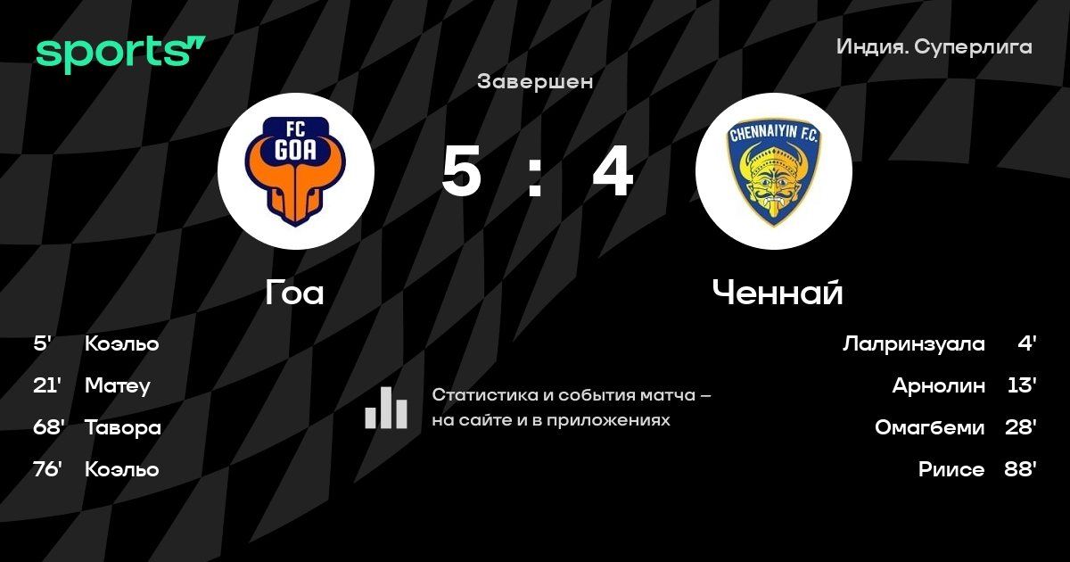 Каттимани - Десай, Рафаэл, Джейквад, Арнолин - Ришарлисон, Матеус Триндаде, Фернандес, Матеу - Сингх, КоэльоЗапасные: Патил, Рой, Кардосо, Алмейда, Франко, Балмучу, Лусиано Саброса, Тавора, Широдкар, Жулио Сезар