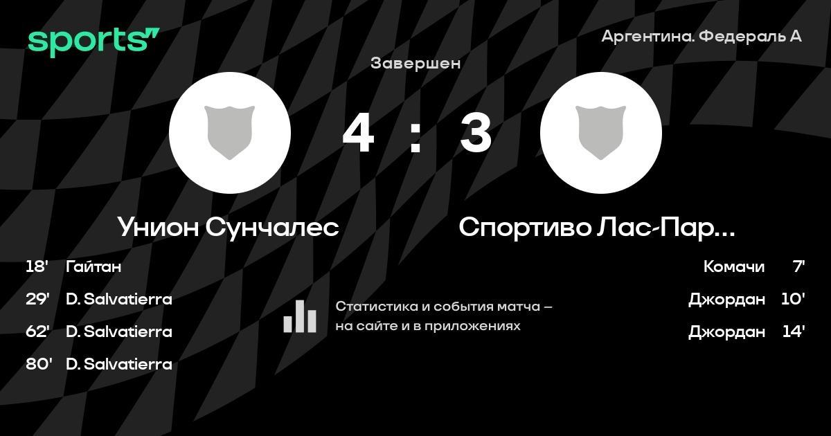 Трансляция Унион Сунчалес - Спортиво Лас-Парехас