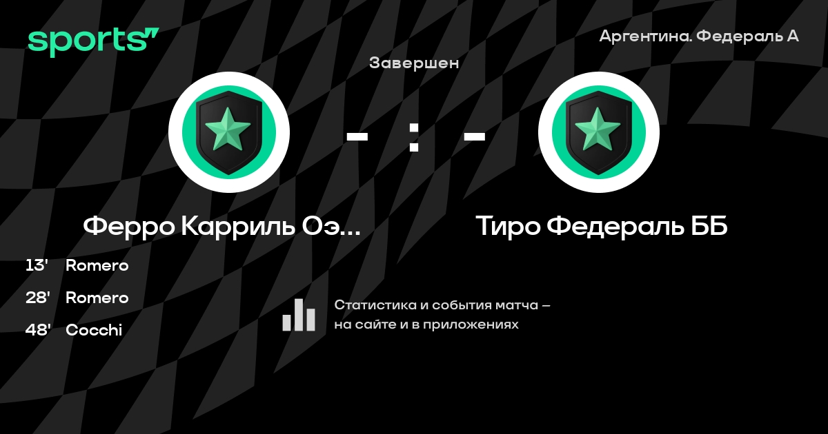 Ферро Карриль Оэсте ЛП - Тиро Федераль ББ: обзор матча