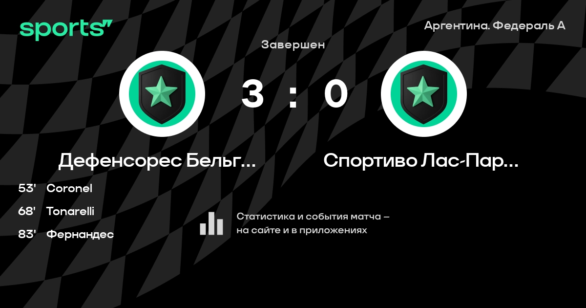 Трансляция Дефенсорес Бельграно ВР - Спортиво Лас-Парехас