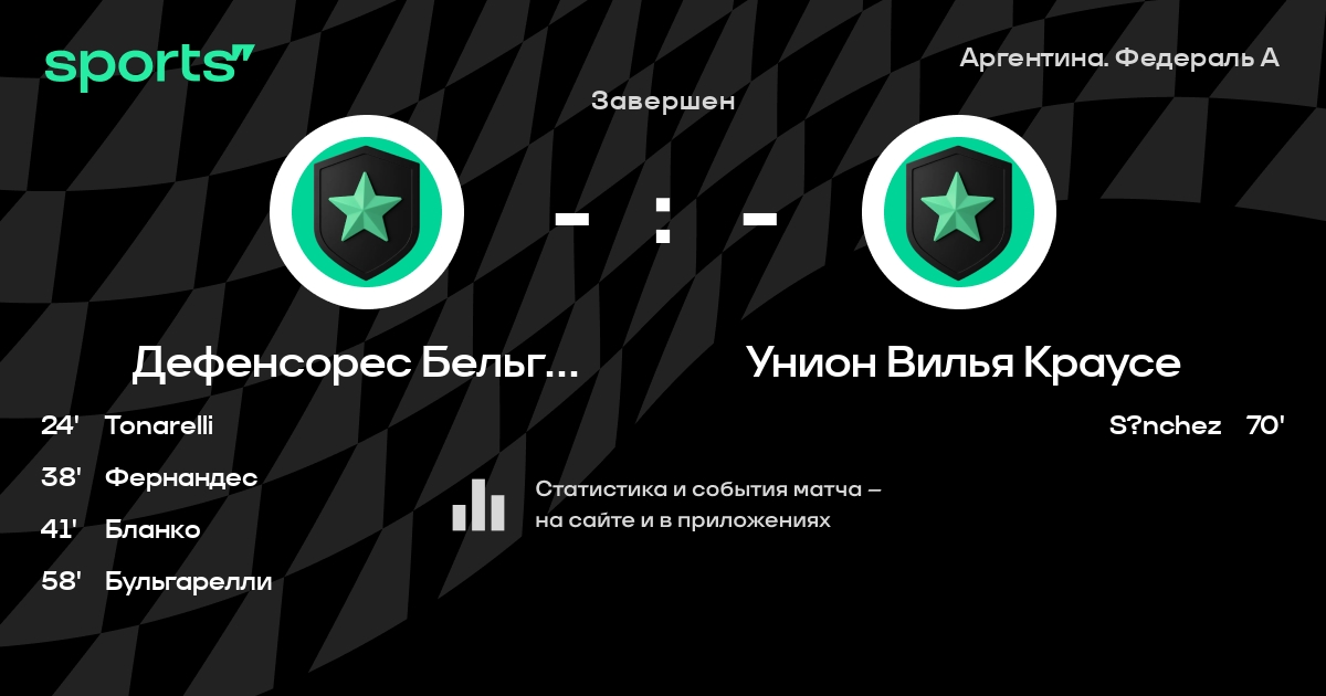 Дефенсорес Бельграно ВР - Унион Вилья Краусе: положение в турнире