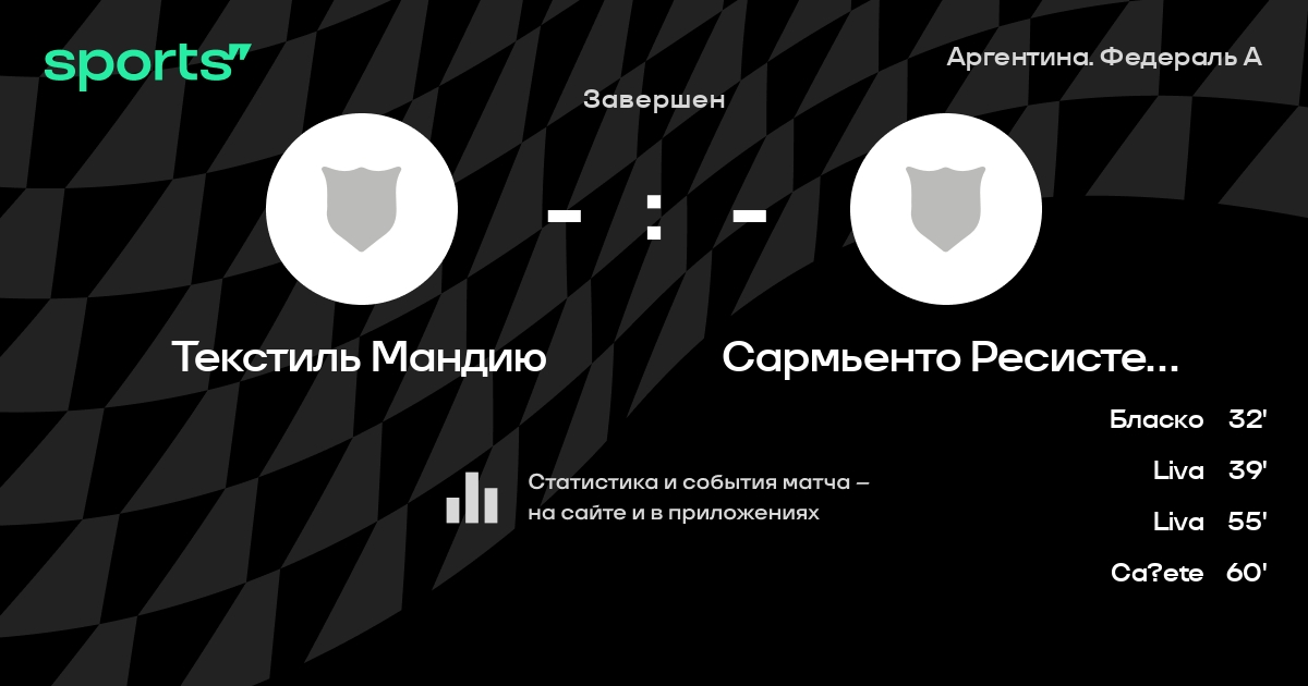 Трансляция Текстиль Мандию - Сармьенто Ресистенсия