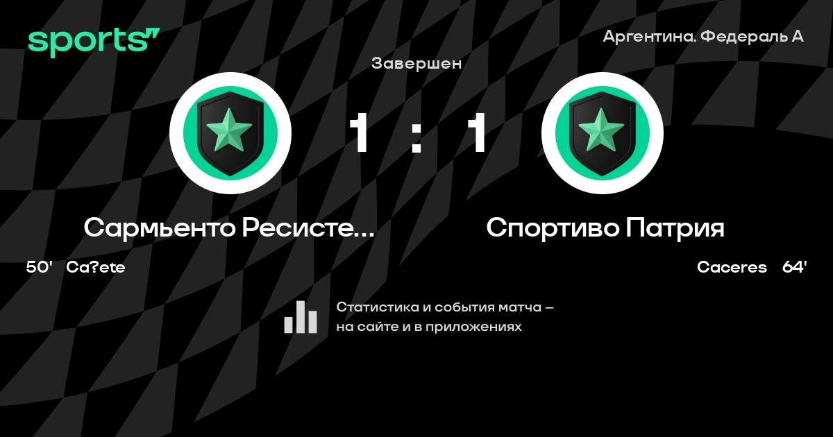 Трансляция Сармьенто Ресистенсия - Спортиво Патрия