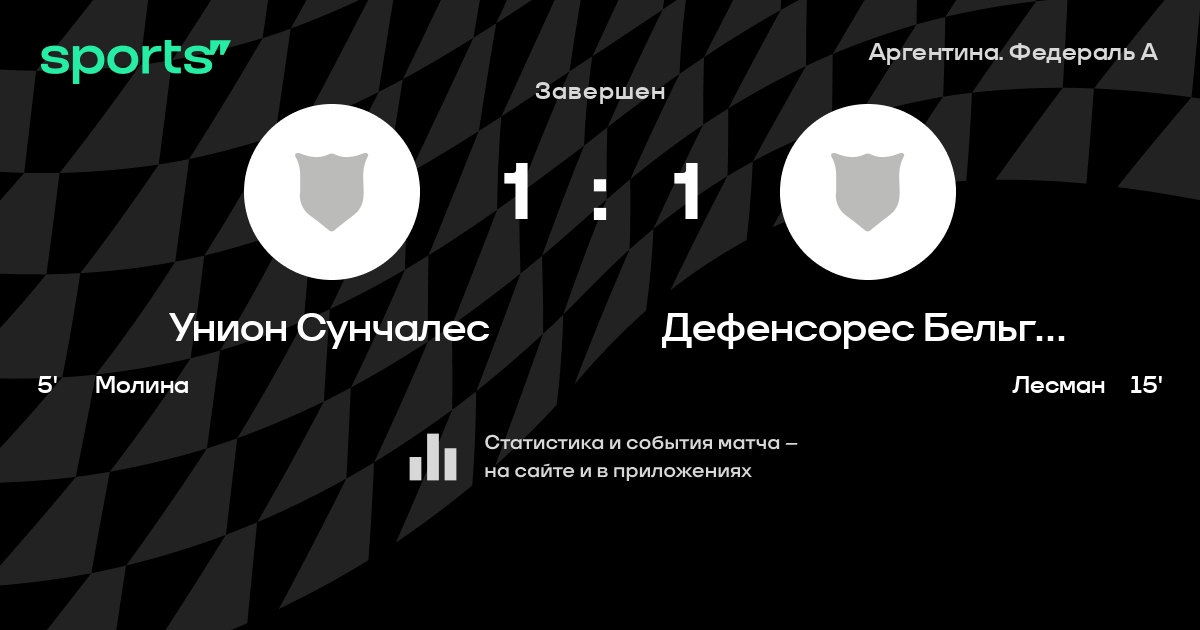 Трансляция Унион Сунчалес - Дефенсорес Бельграно ВР