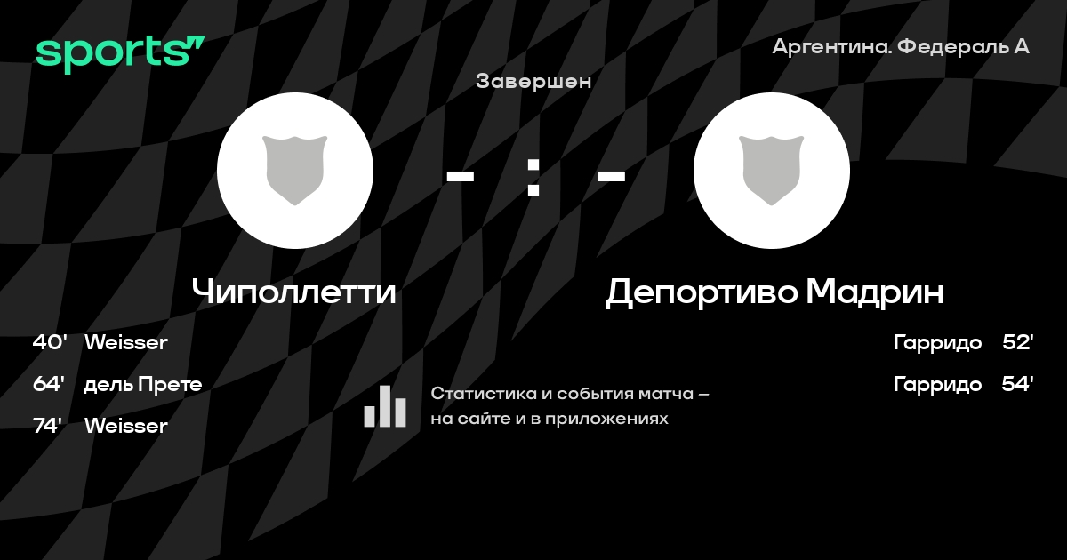 Чиполлетти - Депортиво Мадрин: положение в турнире
