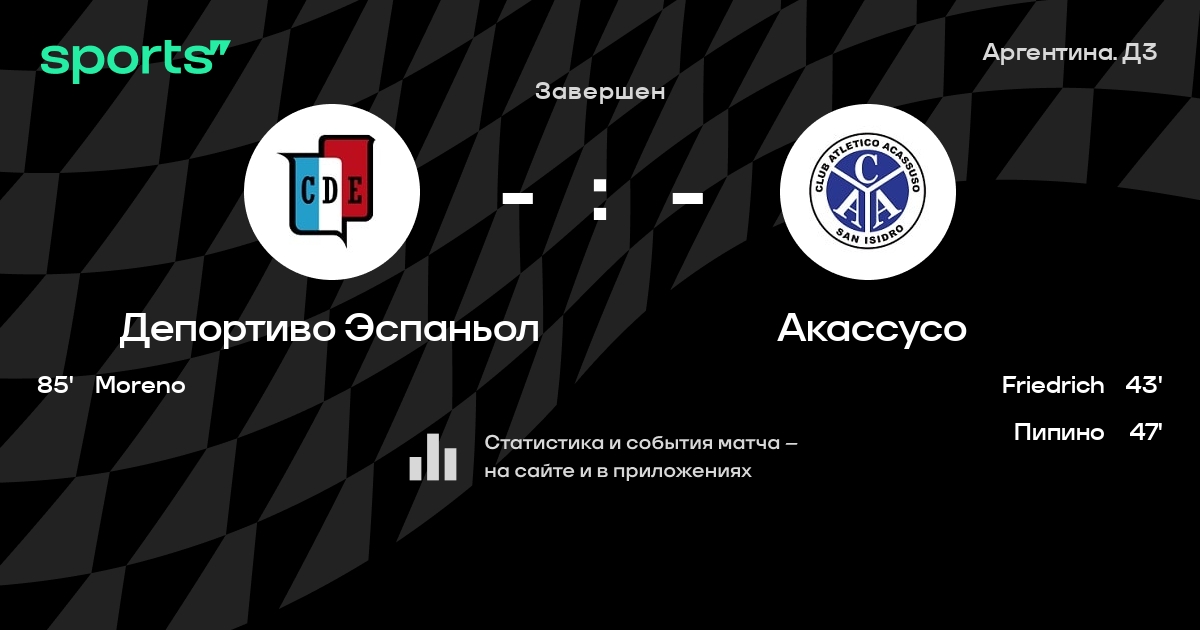 | 18 | Акассусо | 19 | 4 | 8 | 7 | 13 | 22 | -9 | 20 | ||