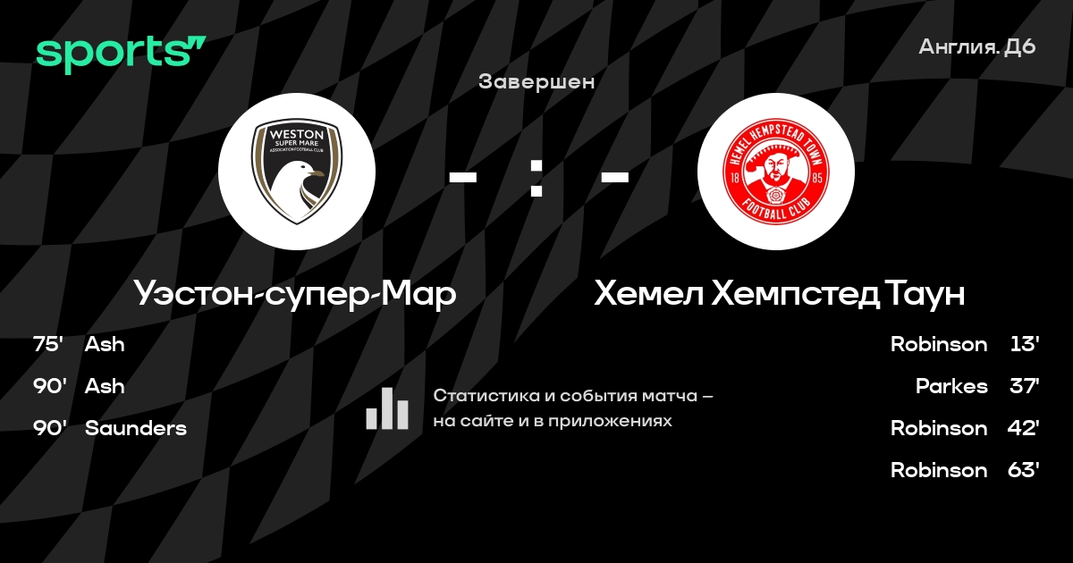 Уэстон-супер-Мар - Хемел Хемпстед Таун: статистика матча