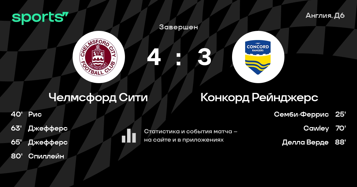 Трансляция Челмсфорд Сити - Конкорд Рейнджерс