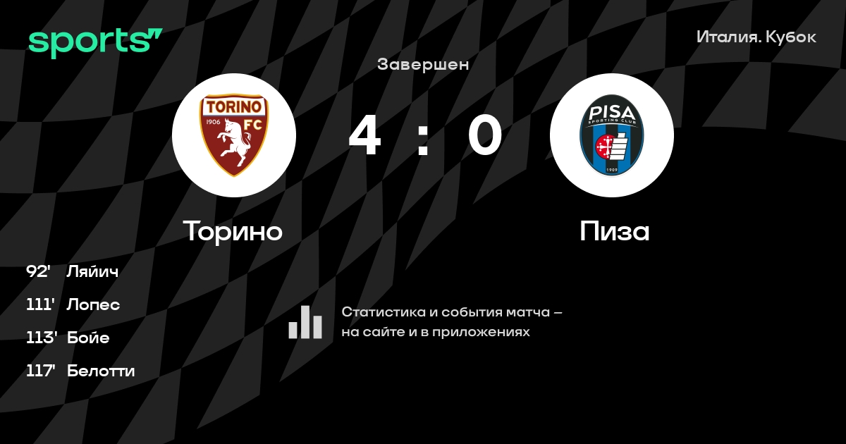 Паделли - Моретти, Айети, Бово, Де Сильвестри - Оби, Лукич, Аккуа - Бойе, Лопес, МартинесЗапасные: Харт, Куккьетти, Баррека, Дзаппакоста, Базелли, Вальдифьори, Ляйич, Густафссон, Араму, Белотти, Яго Фальке