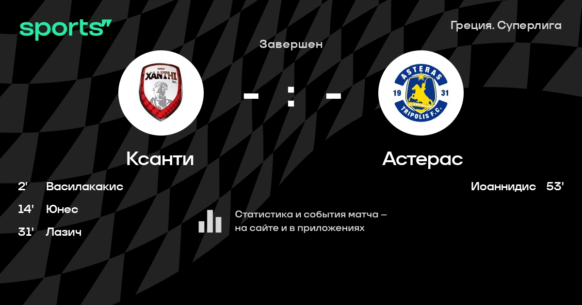 Живкович - Уоллес Перейра, Лисгарас, Флискас, Баксеванидис - де Лукас, Лусеро, Лазич, Василакакис, Триадис - ЮнесЗапасные: Заропулос, Папагеоргиу, Орфанидис, Хацитерзоглу, Орфанидис, Ньето, Ранос