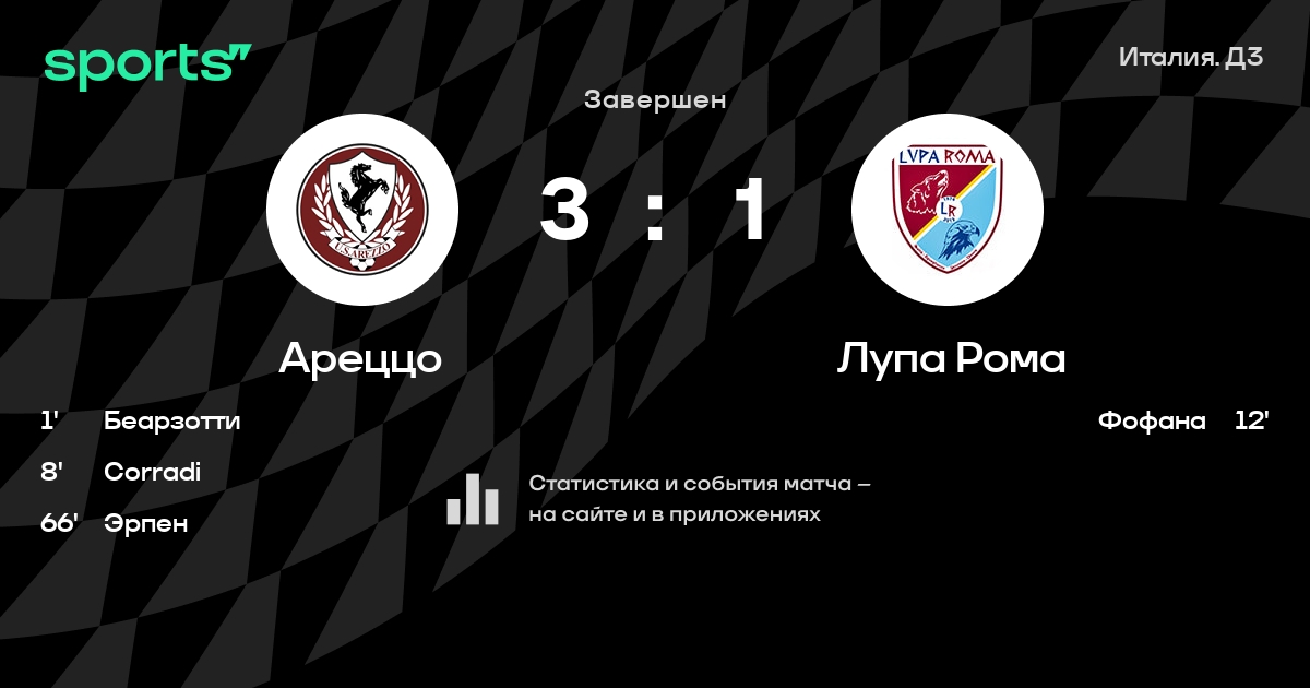 Бенасси - Солини, Luciani, Sabatino, Милези - Эрпен, Де Феудис, Corradi, Foglia, Беарзотти - ПолидориЗапасные: Garbinesi, Борра, Мускат, Сирри, Машанджело, Demba, Ba, Россети, Гросси, Москарделли, D'Ursi
