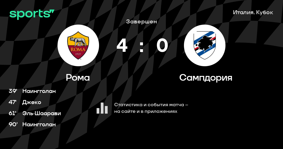 Кубок Италии. 1/8 финала. «Рома» забила 4 гола «Сампдории»