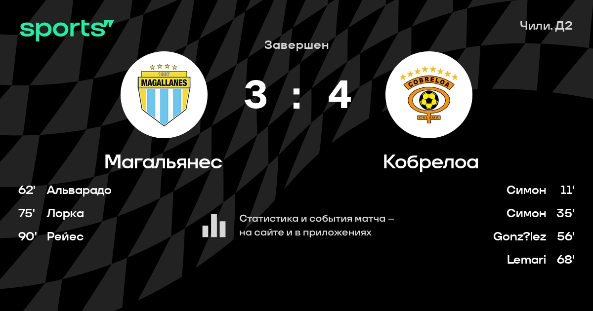 Cacace - Контрерас, Álvarez, González Gutiérrez, Овьедо, Гомес - Sanhueza Medel, Araya Díaz, Pavez - Хименес, СимонЗапасные: Carrasco Quiroz, Гальвес, Корнехо, Сильва, Кофре, Alfaro Paredes, Ромеро
