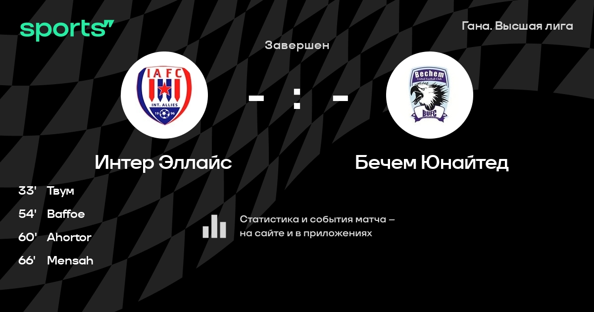Трансляция Интер Эллайс - Бечем Юнайтед
