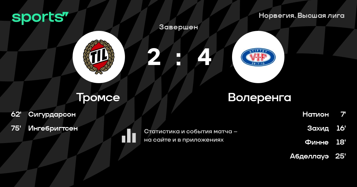 Карлстрем - Ланду Ланду, Гундерсен, Эдегор, Норбю - Сигурдарсон, Йенссен, Асен, Педерсен, Ингебригтсен - СамбЗапасные: Коннсхавн, Диури, Кпозо, Вангберг, Андерсен, Юхансен, Микальсен