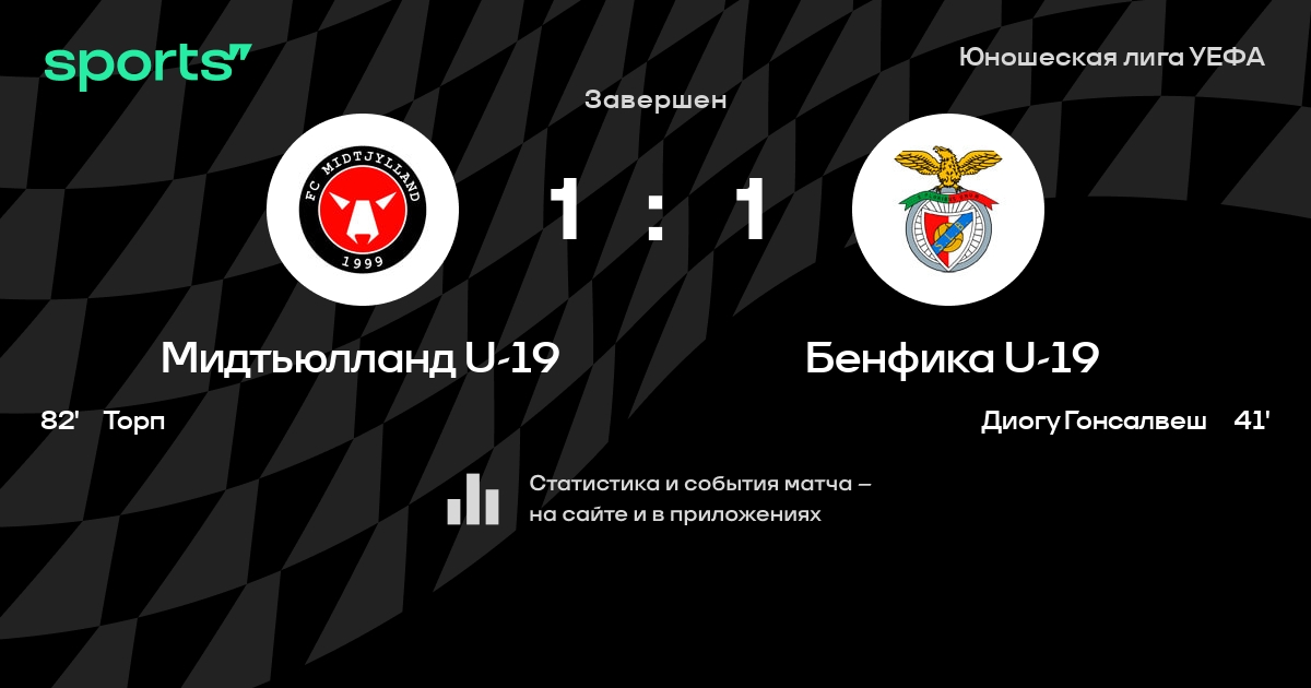Трансляция Мидтьюлланд U-19 - Бенфика U-19