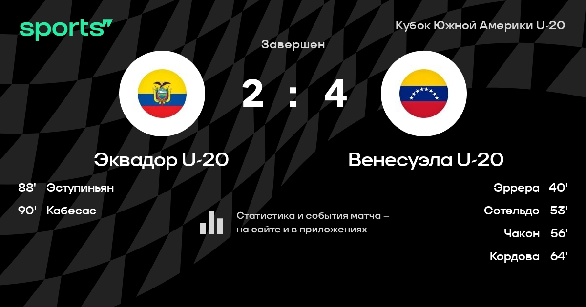 Трансляция Эквадор U-20 - Венеcуэла U-20