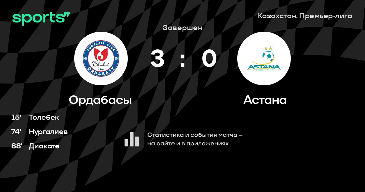 Бекбаев - Рендулич, Толебек, Ерланов - Диакате, Ковальчук, Тунгышбаев, Смаков, Бочаров, Нургалиев - НусербаевЗапасные: Бойченко, Фонтанелло, Адырбеков, Кожабаев, Аширбеков, Бейсенов, Гейнрих, Булешев, Марцваладзе