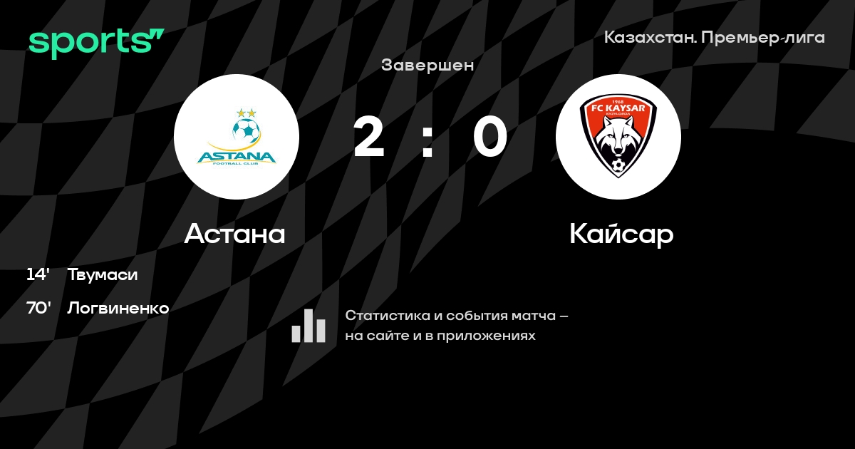 Мокин - Аничич, Бейсебеков, Логвиненко - Шомко, Маевский, Мужиков, Кляйнхайслер - Твумаси, Кабананга, МуртазаевЗапасные: Эрич, Шитов, Постников, Жалмукан, Граховац, Жакипбаев, Сагнаев, Прокопенко, Деспотович