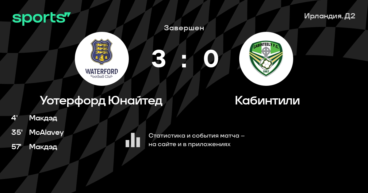 Уотерфорд Юнайтед - Кабинтили: положение в турнире