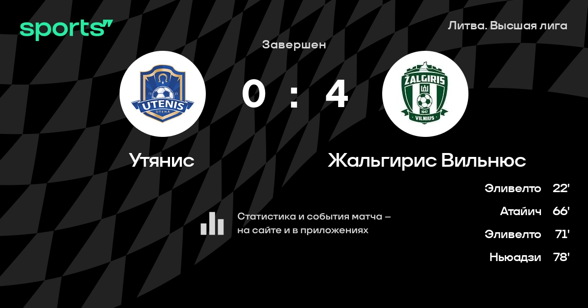 | 2 | Жальгирис Вильнюс | 33 | 20 | 7 | 6 | 62 | 31 | +31 | 67 | ||