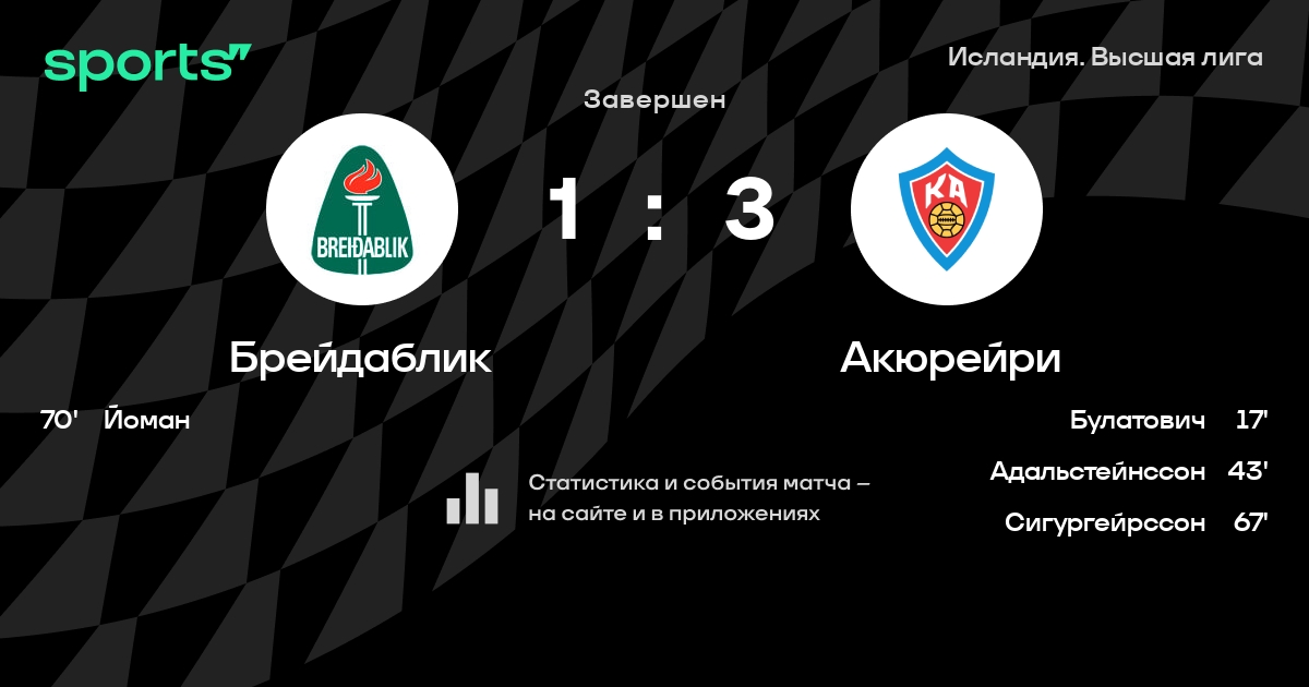 Rajkovic - Булатович, Ториссон, Viðarsson, Трнинич, Williams - Ормарссон, Стейнгримссон, Торстейнссон - Адальстейнссон, СигургейрссонЗапасные: Birnuson, Árnason, Адальстейнссон, Petursson, Jónsson, Люнг, Хафстейнссон