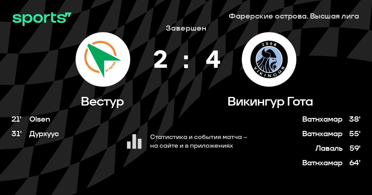 Расмуссен - Якобсен, Хансен, Ватнхамар, Якобсен, Юрхуус, Грегерсен - Ватнхамар, Самуэльсен - Джорджевич, ЛавальЗапасные: о Рейнатред, Свенссон, Лервиг, Ольсен, Расмуссен