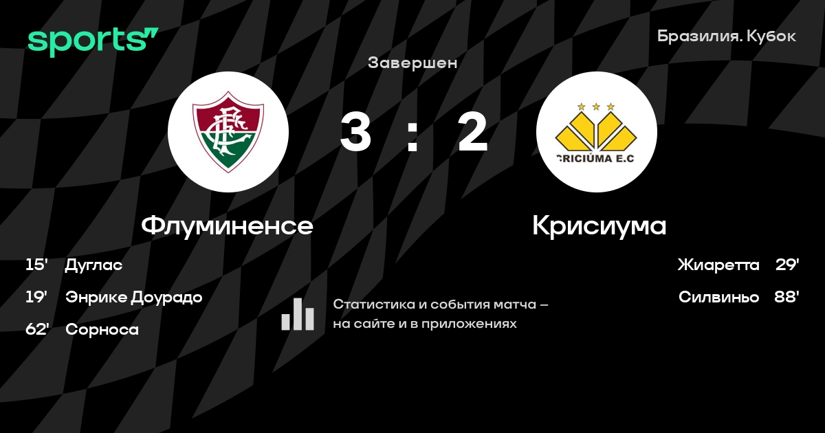 Кавальери - Энрике Адриано, Лео Пиньейро, Шавес - Орехуэла, Дуглас, Сорноса - Веллингтон, Энрике Доурадо, Ренато, РишарлисонЗапасные: Жакоби, Ногейра, Fernandes, Луис Фернандо, Маркос Жуниор, Вендел, Матос, Педро, Silva Rocha Calazans