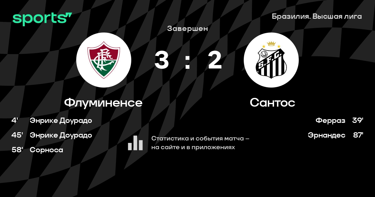 Кавальери - Лео Пиньейро, Энрике Адриано, Шавес, Лукас - Вендел, Орехуэла, Сорноса, Ришарлисон, Веллингтон - Энрике ДоурадоЗапасные: Жакоби, Ногейра, Скарпа, Маркос Жуниор, Пьер, Дуглас, Педро, Сантос, Ренато