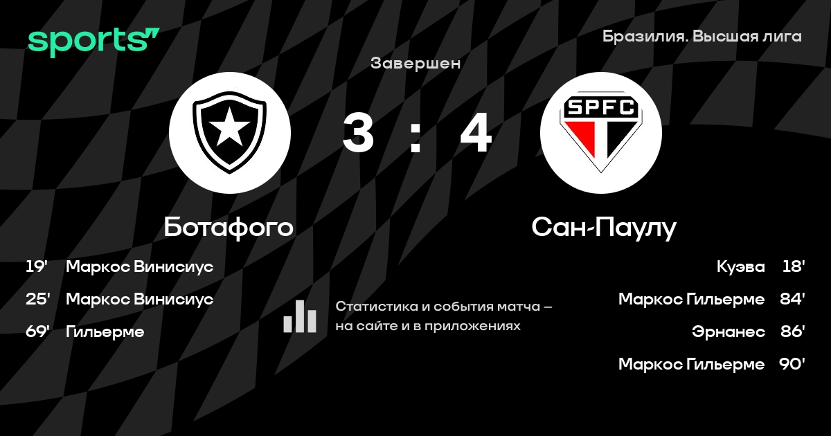 Рибейро - Эдимар, Родриго Кайо, Арболеда, Бруно Виейра - Куэва, Жусилей, Эрнанес, Петрос, Марсиньо - ПраттоЗапасные: Сидао, Буффарини, Милитао, Фелипе Араруна, Шайлон, Гомес, Сисеро, Веллингтон Нем, Маркос Гильерме, Жилберто, Денилсон, Томас
