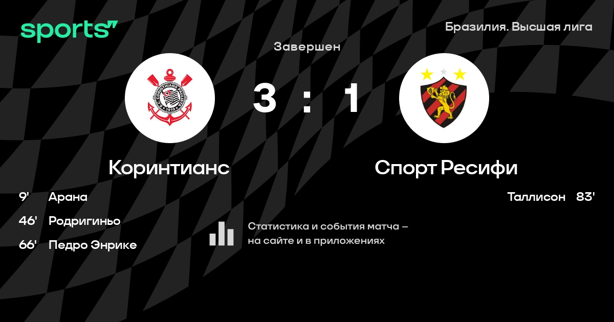 Кассио - Арана, Педро Энрике, Бальбуэна, Фагнер - Майкон, Габриэл, Клайсон, Родригиньо, Ромеро - ЖоЗапасные: Валтер, Лео Принсипе, Лео, Педриньо, Родриго Фигейредо, Феллипе Бастос, Джованни Аугусто, Пауло Роберто, Камашо, Казим-Ричардс, Клейтон, Карлиньос