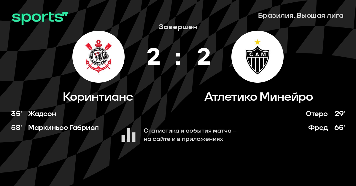 Кассио - Арана, Педро Энрике, Бальбуэна, Фагнер - Габриэл, Камашо, Клайсон, Родригиньо, Жадсон - ЖоЗапасные: Каике, Лео Принсипе, Лео, Педриньо, Феллипе Бастос, Джованни Аугусто, Марсиэл, Пауло Роберто, Майкон, Маркиньос Габриэл, Казим-Ричардс