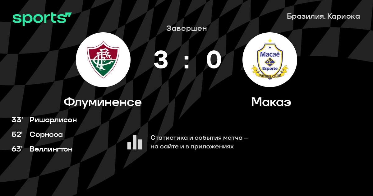 Кавальери - Лео Пиньейро, Лукас, Шавес, Энрике Адриано - Матос, Сорноса, Вендел - Педро, Ришарлисон, ВеллингтонЗапасные: Жакоби, Ногейра, Луис Фернандо, Fernandes, Маркос Жуниор, Ренато, Энрике Доурадо