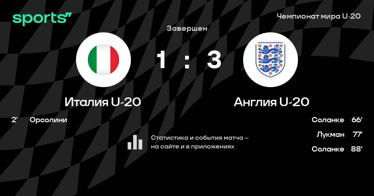 Трансляция Италия U-20 - Англия U-20