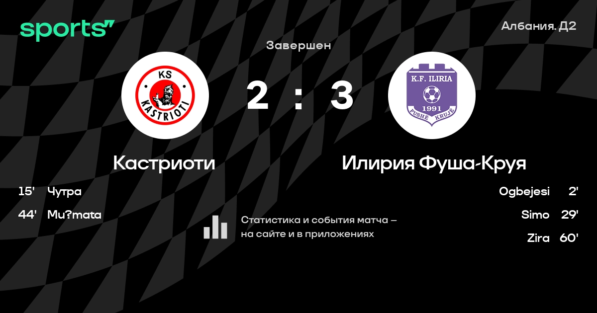 Кастриоти - Илирия Фуша-Круя: статистика матча